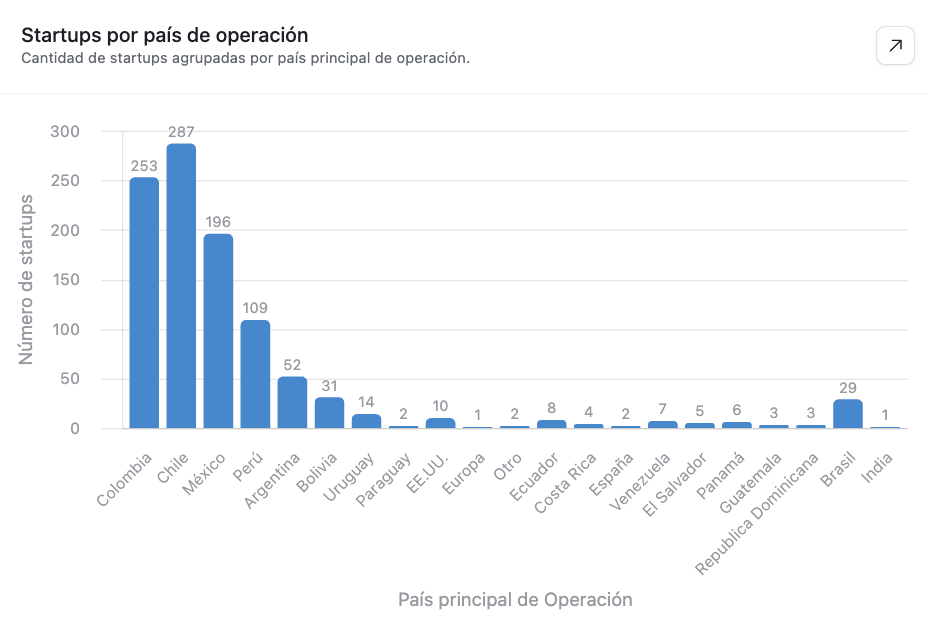 El 82% del dealflow se concentra en Chile (28%), Colombia (24.7%), México (19.1%) y Perú (10.6%). Chile y Colombia aportan más de la mitad del pipeline (52.7%), mientras que el resto de LATAM y otros mercados tienen una participación oportunística.